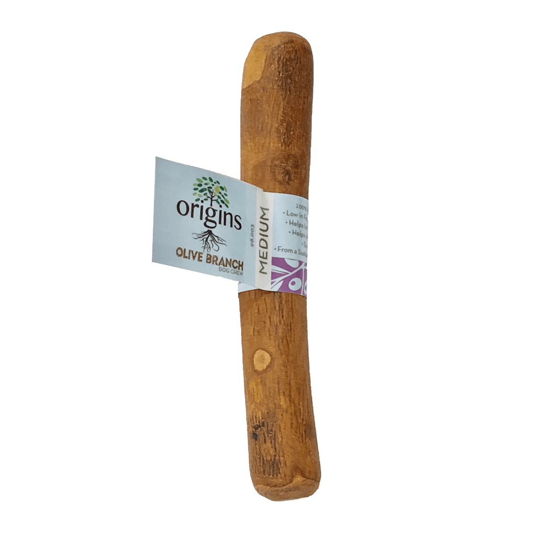 Olive branch chews are great for satisfying your dogs chewing instinct. While your dog is gnawing on the branch, it will scrape the plaque and tartar build up promoting strong and healthy teeth. Olive branch chews can be enjoyed by all breeds and sizes. Choose the largest stick appropriate for your breed of dog.