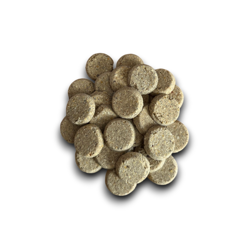 Each biscuit is enriched with Omega-3 rich flaxseed to support heart and immune health, biotin from whole dried egg to promote a healthy skin and shiny coat, and coconut flour for natural digestive support and energy. A tasty, nourishing treat that dogs love, perfect for daily rewards or as part of a balanced routine.