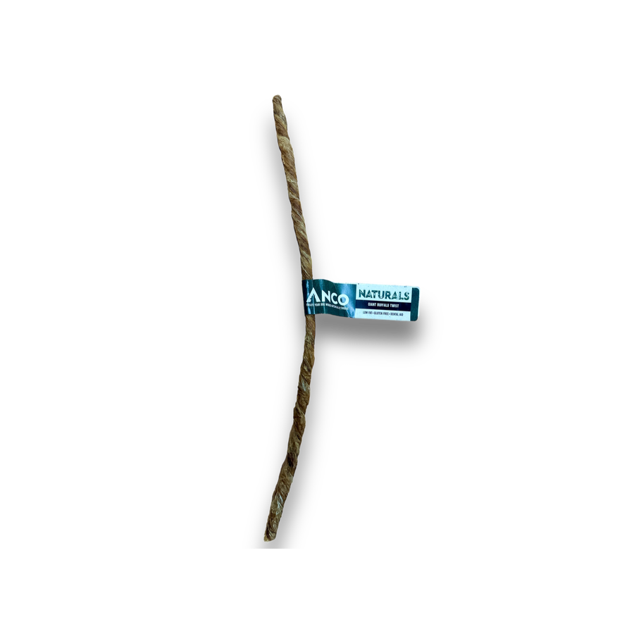 Expertly crafted from premium Buffalo bladder, this oversized twist is a powerhouse of high-quality protein, essential vitamins, and minerals. As well as providing rich flavour, this treat can aid muscle development, immune support, and overall well-being. The unique twisted form enhances the chewing experience, promoting dental health by naturally reducing plaque and tartar build-up. Packed with nutrients, the Anco Naturals Giant Buffalo Twist contributes to overall vitality and satisfaction. Completely chemical and additive free, this treat is both nutritious and delicious!