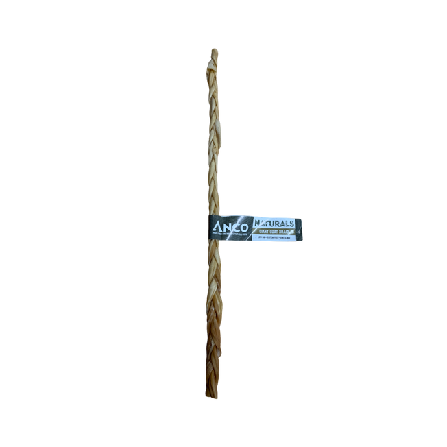 Anco Giant Goat Braids can be a great alternative to other more widely available proteins if your dog has common protein allergies/intolerances or food sensitivities as they are hypoallergenic, they'll be gentle on even the sensitive tummies. If your dog is a keen chewer, sometimes a larger treat is necessary. These Giant Braids are a great way to relieve their natural chewing instincts in a fun, safe way while also allowing them to absorb the health benefits! Goat is leaner than Beef and Pork and also has more Iron per serving than Beef, Pork, Lamb and Chicken! Chewing down on a Giant Goat Braid could be an excellent way to sneak these into your dog's diet. *Approximately 40-50cm*