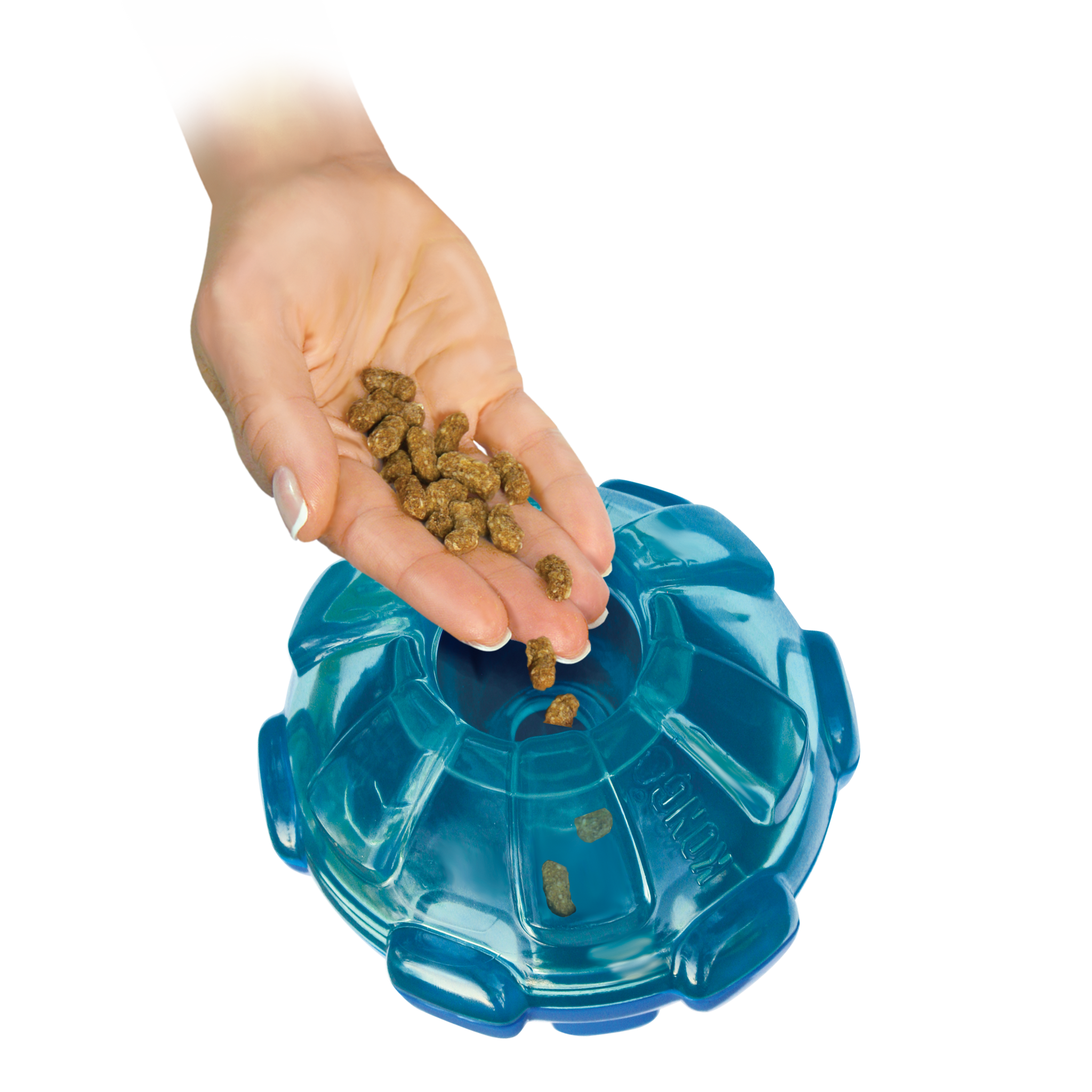 Its unique shape creates an unpredictable bounce and roll, encouraging active play while remaining suitable for quieter sessions. The easy-load funnel makes filling simple, and it can also be used as part of mealtime routines to help slow feeding when used appropriately.