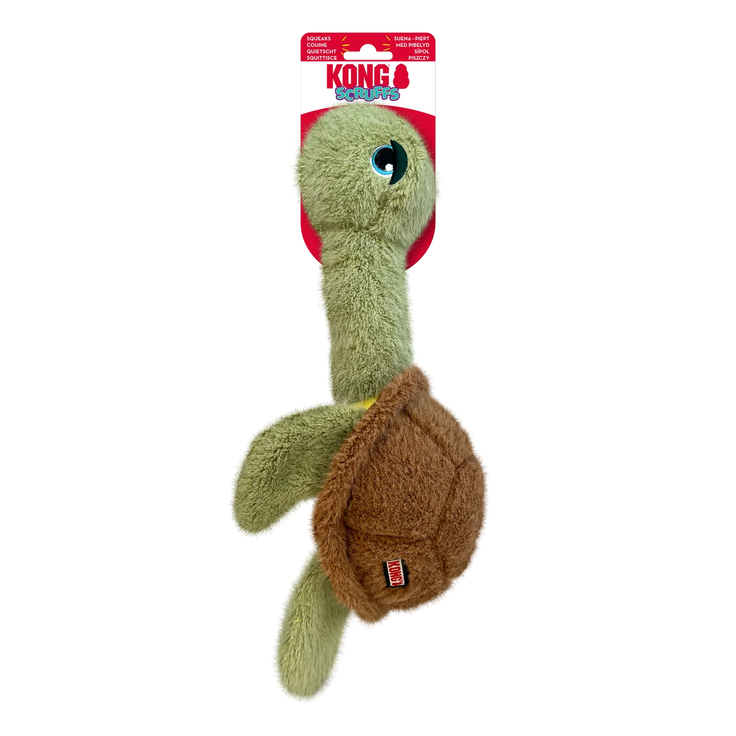 Make playtime extra fun with the KONG Scruffs Turtle, a soft and engaging plush toy designed for dogs who love to grab, shake, and squeak. The elongated neck is filled with a uniquely textured super-squeaker that rewards instinctual play, keeping dogs entertained with every squish, thrash, and shake.
